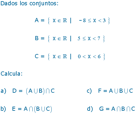 2) Expresa los siguientes conjuntos en forma de intervalo, y represéntalos gráficamente: