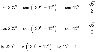Hallar las razones trigonométricas de 225o