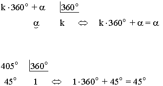 Dos ángulos α y k·360o+α que difieren en un número entero de vueltas, son equivalentes: