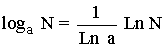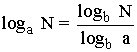 El logaritmo en base a de un número N se puede obtener a partir de logaritmos en otra base b.