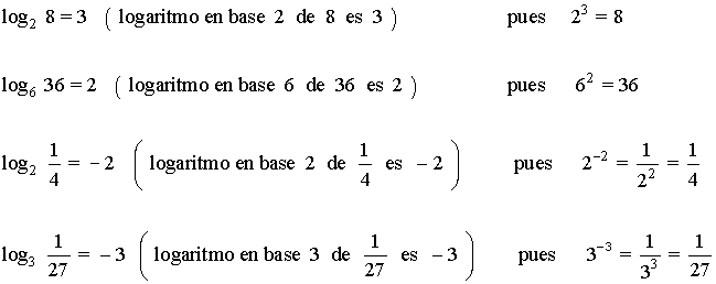 Por tanto el logaritmo de un número es el exponente al que hay que elevar la base para obtener dicho número.