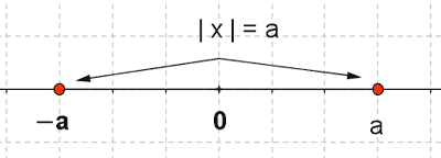 | |x| = a | La distancia de x al origen es a | x = ± a |