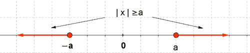 | |x| ≥ a | La distancia de x al origen es mayor o igual que a | x ≥ a ó x ≤ - a |