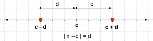 | |x - c| = d | La distancia entre x y c es d | x - c = ± d ⇔ x = d + c ó x = - d +c |